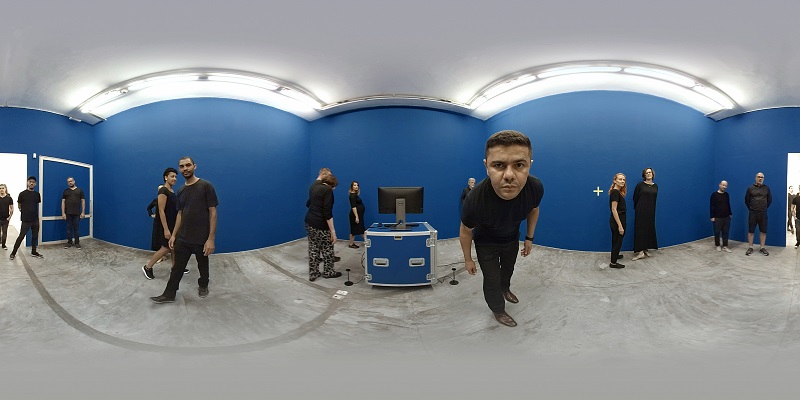 En esta instalación, el espectador ingresa en una sala azul en la que sólo hay un piso, un computador y un maletín. Al ponerse los lentes y entrar en el espacio virtual, se invierte la lógica de una típica exposición de arte y el espectador pasa a convertirse en el objeto observado. A pesar de que es sometido a diferentes estímulos todo sucede en un plano visible sólo dentro del sistema, para quien usa los lentes de realidad virtual, de la misma forma como ocurre en las relaciones que entablamos a través de redes sociales y sistemas de comunicación digital. Si bien, herramientas como el teléfono celular, internet y aplicaciones de video chat nos facilitan el trabajo e incluso nos permiten conocer a distintas personas, no siempre el contacto implica la misma intimidad producida por un encuentro cara a cara. Es como si la tecnología fuera en todo momento la responsable de una experiencia impresionante: transportarnos a otros lugares y, sin embargo, estos mismos algoritmos y tecnologías como la realidad virtual, pueden emular situaciones que nos permiten reflexionar sobre el aquí y el ahora, sus peligros, sus incomodidades, pero también su importancia.